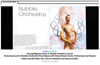 will be the official launch of ‘Virtual Dream Center 4.1 x Precog Magazine Bubble Orchestra’ . . at PRINTED MATTER / St. Marks Place !!