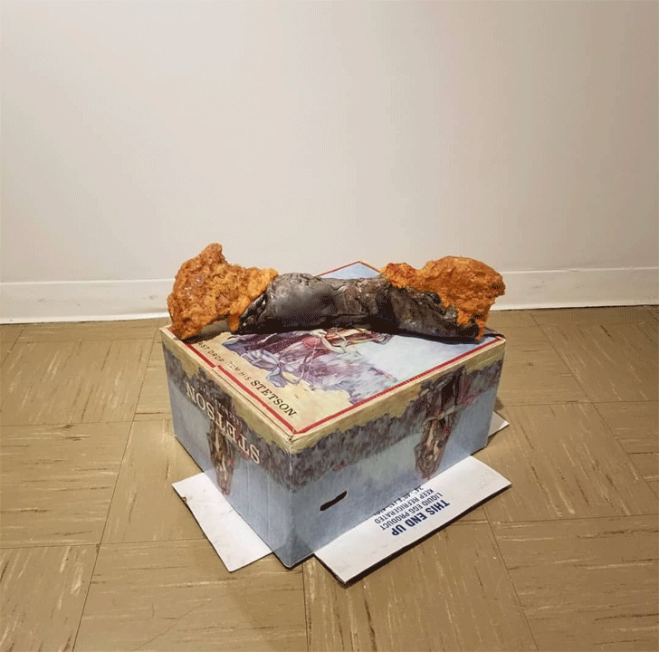 Glazed ceramic, bison, braided cord, Tang drink mix, epoxy, Stetson hatbox