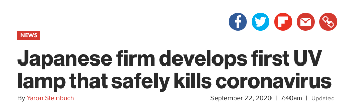 see: JAPANESE FIRM DEVELOPS FIRST UV LAMP THAT SAFELY KILLS CORONAVIRUS / NYP