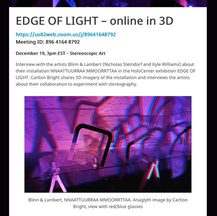 ~’EDGE OF LIGHT’ . . Interview with BLINN & LAMBERT / SAT DEC 19 / 2:30 PM