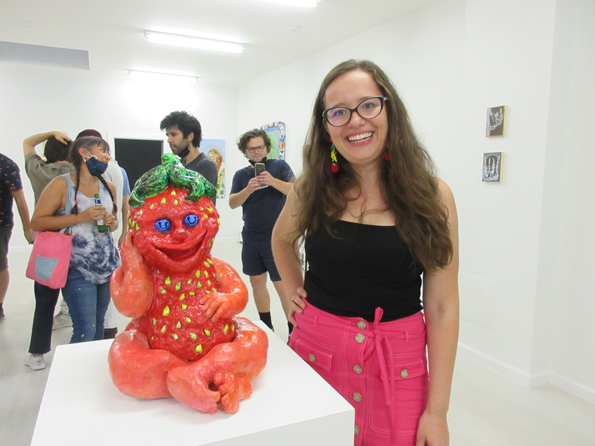 IRENA JUREK . . with her acrylic on sculpy figure, ‘Luck Guy’.