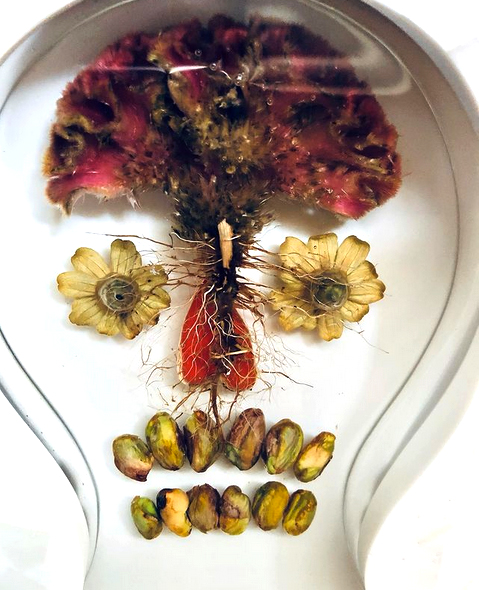 His works are mainly composed of transparent shapes in which plants – are encapsulated.”