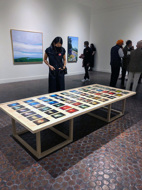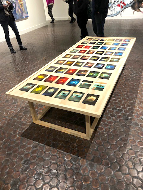 Fifty-four archival pigment prints under museum glass . . on a custom wood table of their own making /