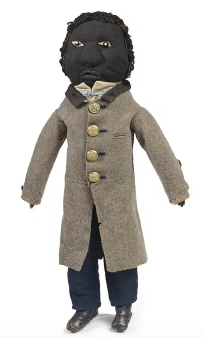 ‘Black doll in gentleman’s top coat’, 1860-70, Milton, MA / Maine.