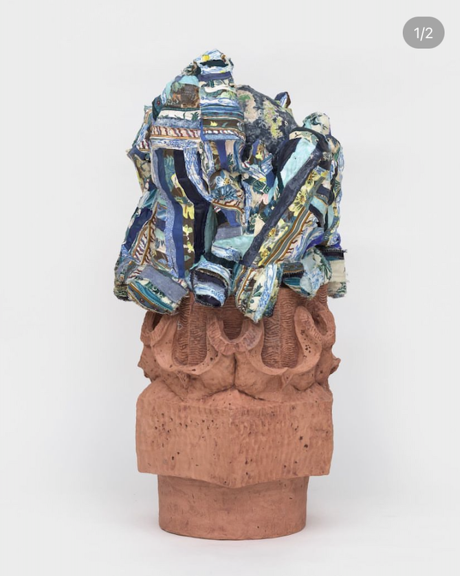 Stoneware, watercolor, gouache, fabric, cyanotype, pencil, perlite, copper.