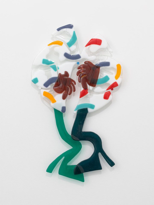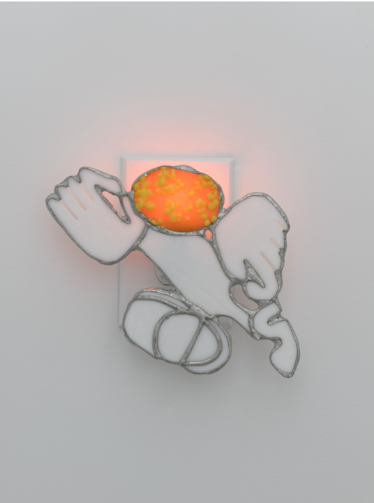 Fused stained glass, silver solder, bulb / 6.5 x 6 x 2 in.