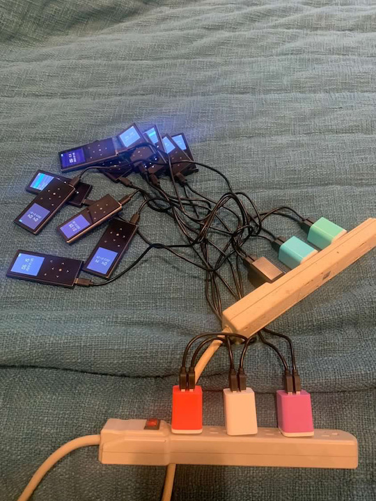 @pleather_mommy: “it’s a 12 part sound piece and here are all the mp3 players charging :) !!!!”