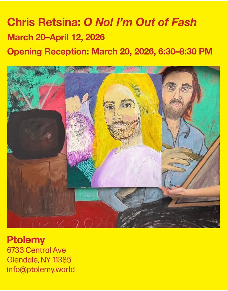 ~CHRIS RETSINA / ‘OH NO! I’M OUT OF FASH’ CLOSING PARTY & DRAWING CONTEST / PTOLEMY WORLD / GLENDALE, QUEENS, NYC / SUNDAY APRIL 12, 2026